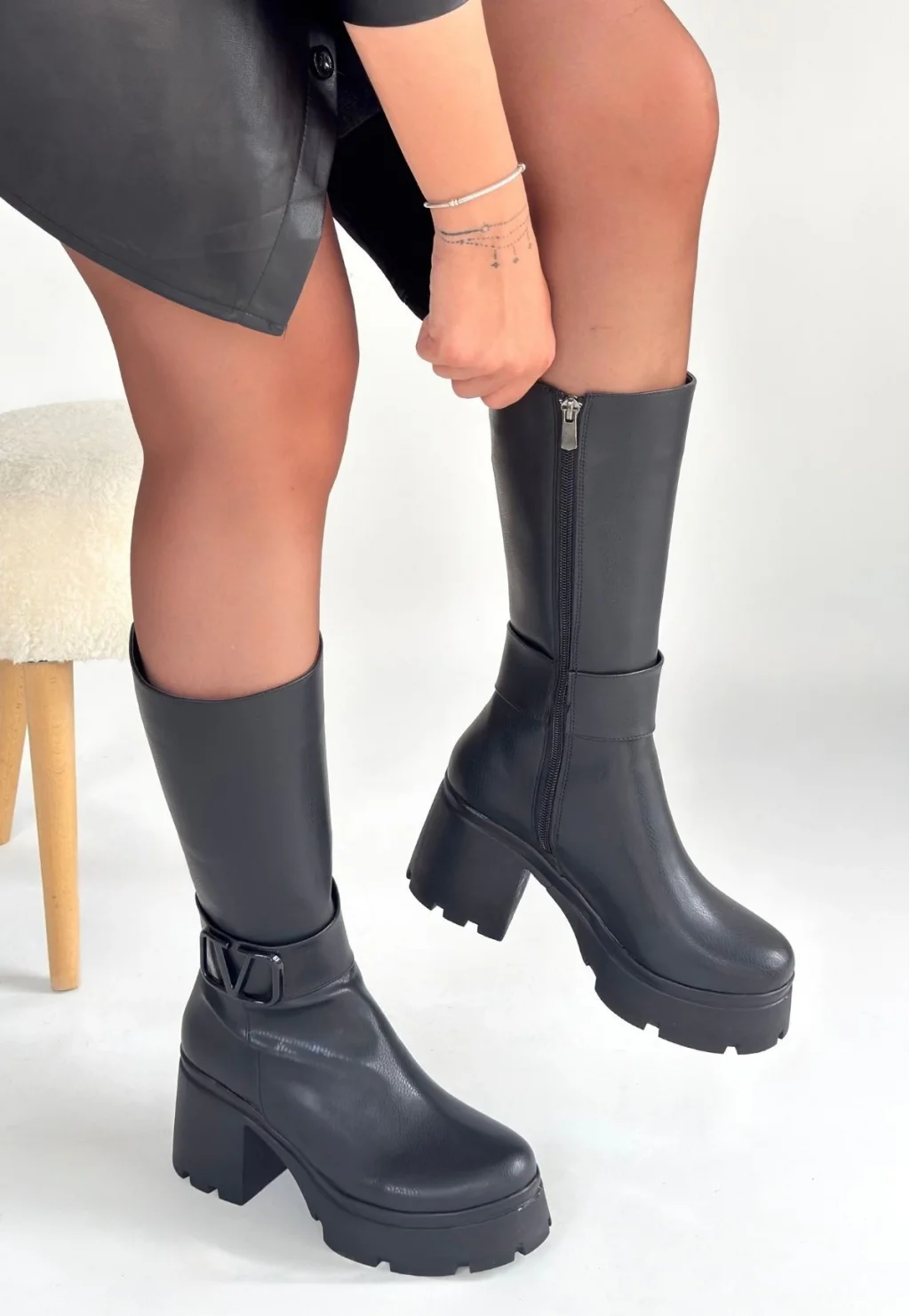 Detay: Topuklu Yandan Fermuarlı Çizme