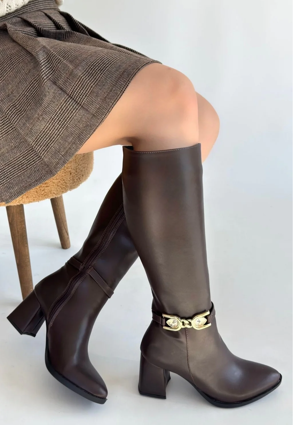 Mooni Kahverengi Cilt Topuklu Çizme