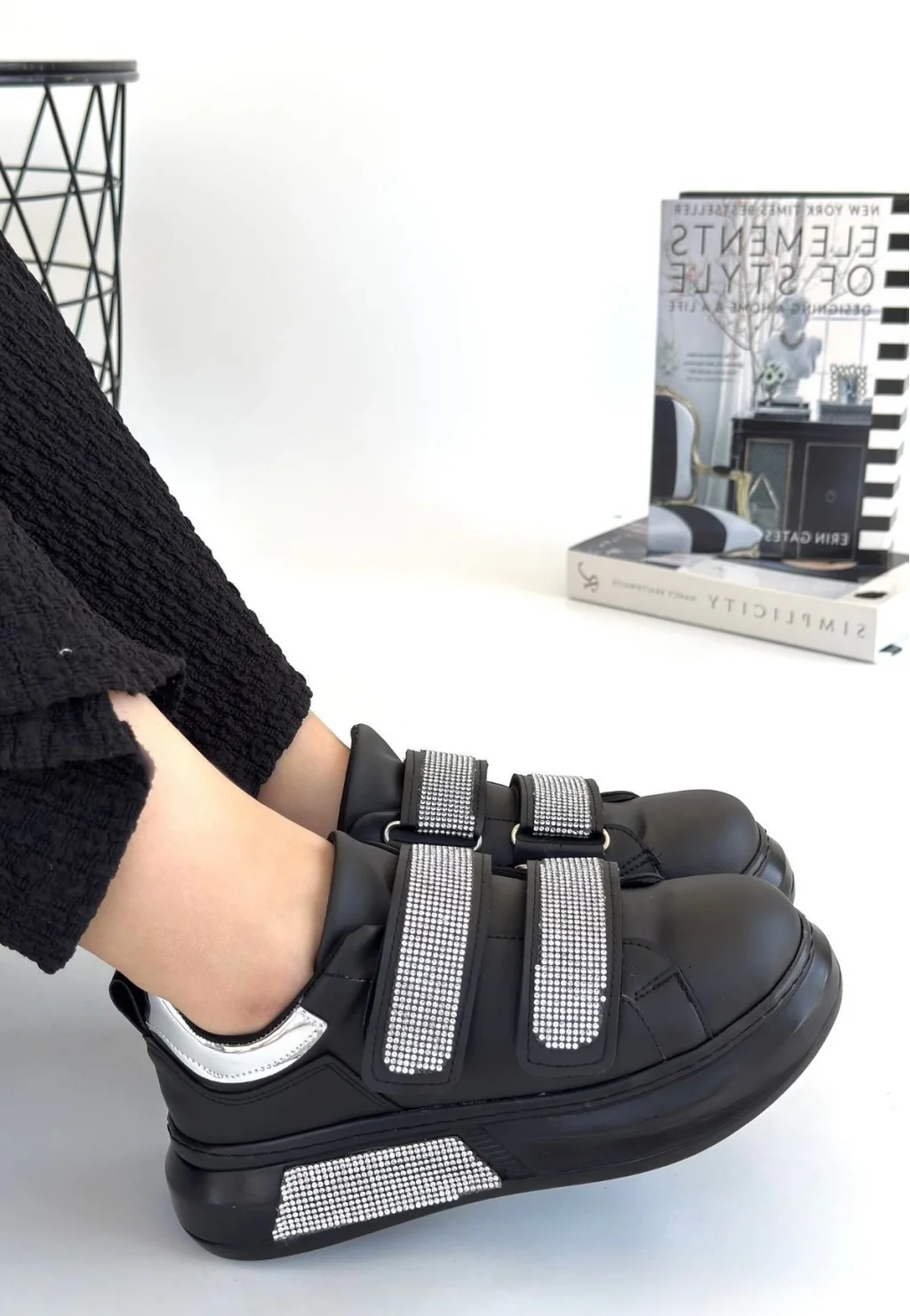 Nino Siyah Cilt Cırt Cırtlı Spor Ayakkabı