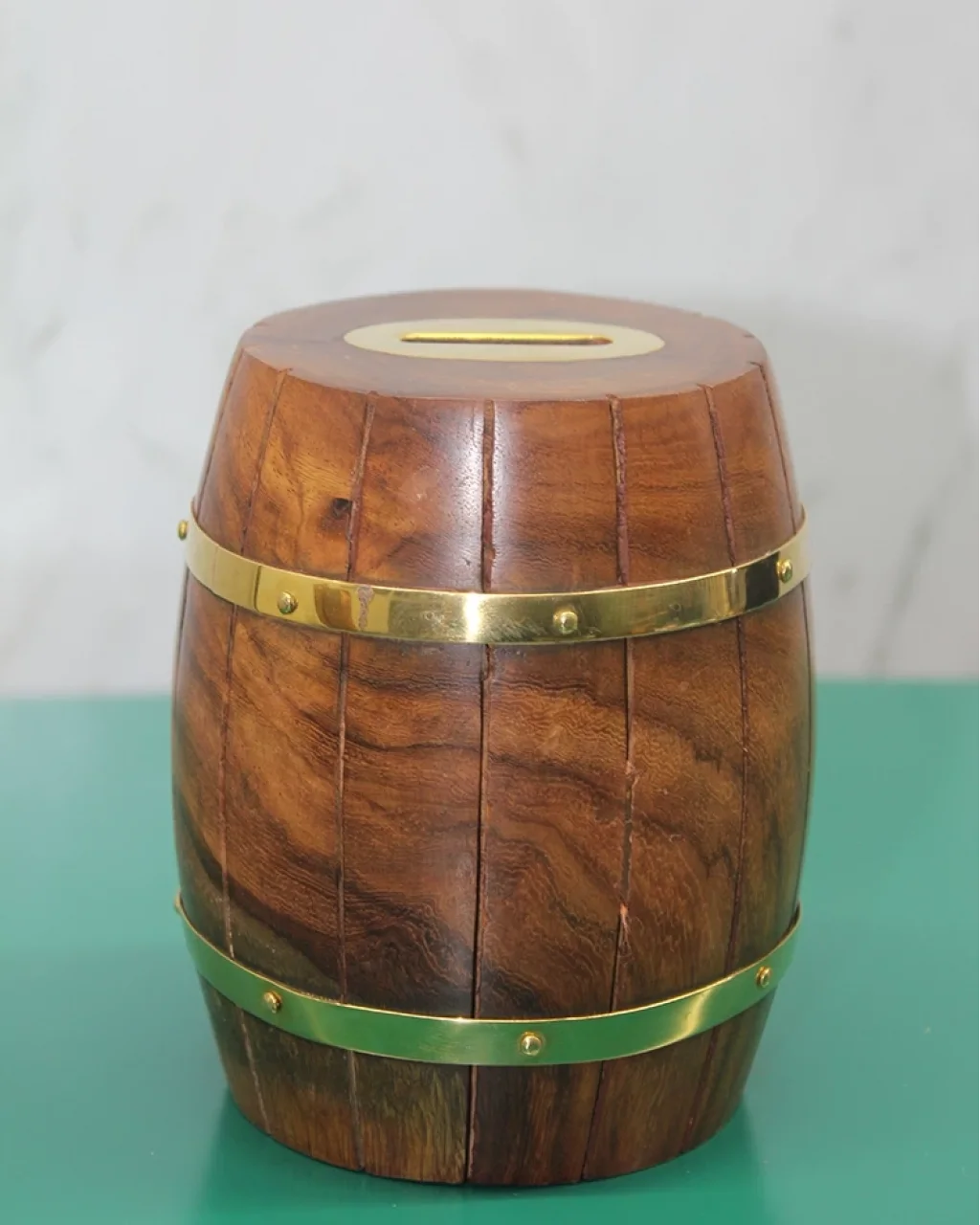 Pirinç Ahşap Fıçı Kumbara 12.5 Cm Wb535