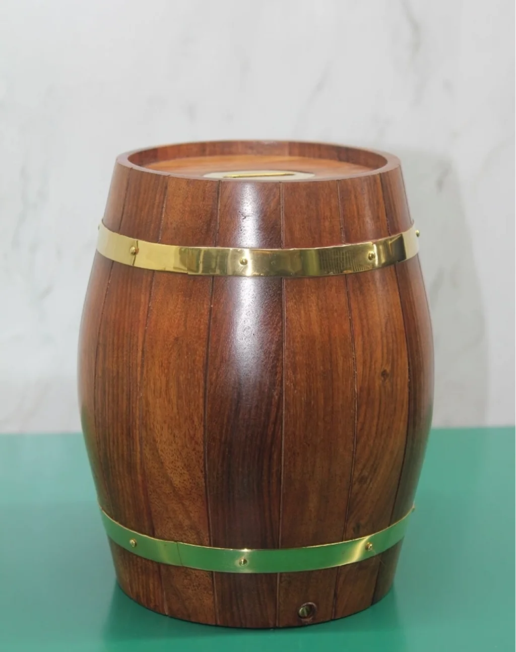 Pirinç Ahşap Fıçı Kumbara 15 Cm Wb538