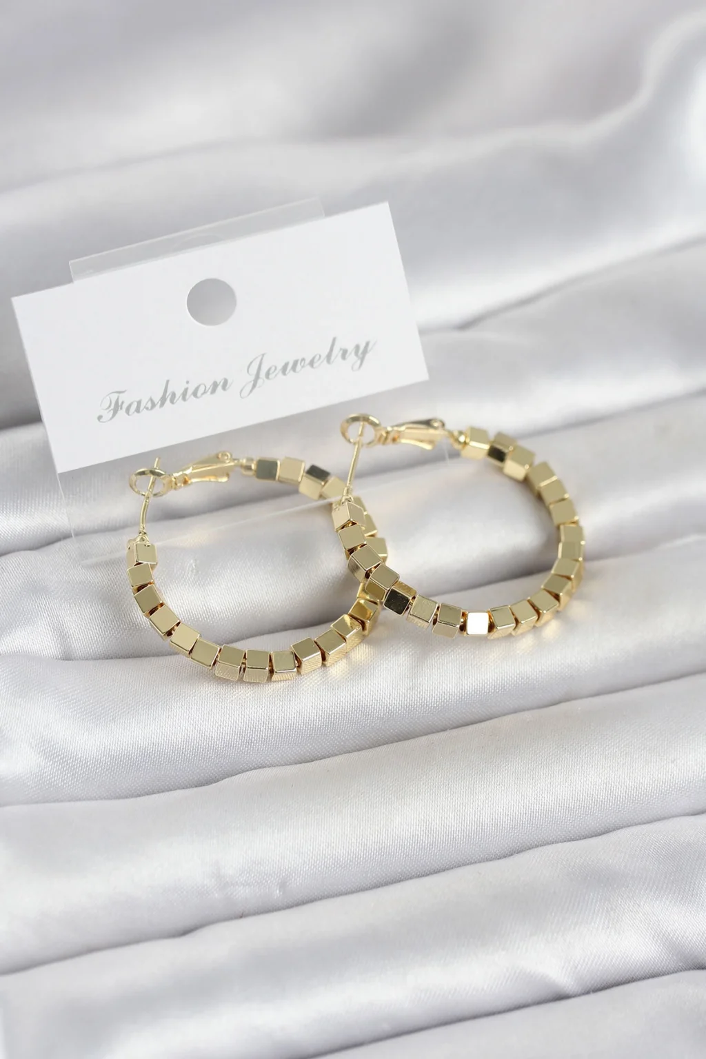 Pirinç Gold Renk Kare Halka Model Kadın Küpe