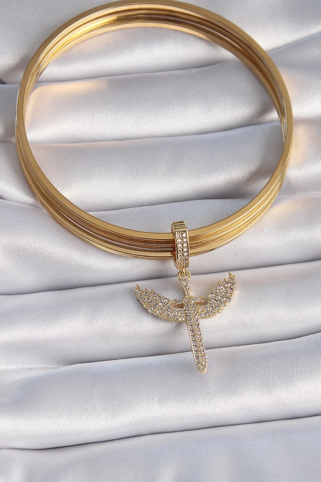 Pirinç Gold Renk Zirkon Taşlı Mikail Model Ajda Charm
