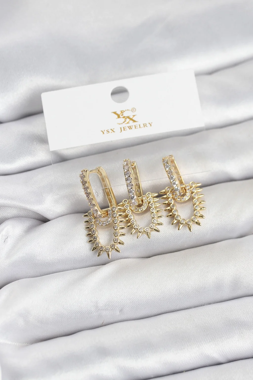 Pirinç Gold Renk Zirkon Taşlı Vintage Model YSX Trio Küpe Seti