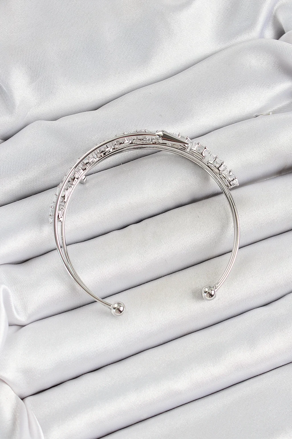 Pirinç Gümüş Renk Arpa Zirkon Taşlı Kadın Bileklik