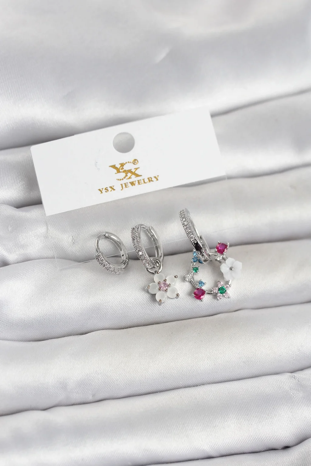 Pirinç Gümüş Renk Çiçek Model 3'lü Kadın Küpe