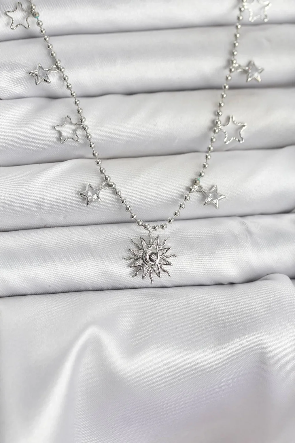 Pirinç Gümüş Renk Güneş Model Kadın Kolye