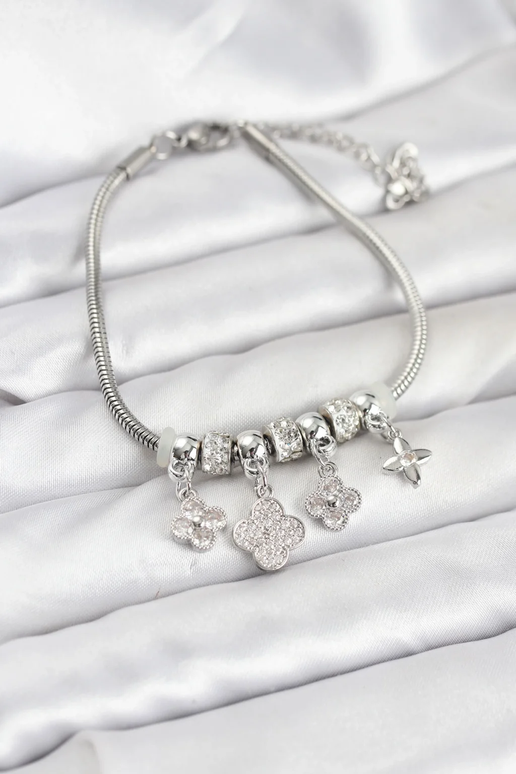 Pirinç Gümüş Renk Yonca Model Kadın Bileklik