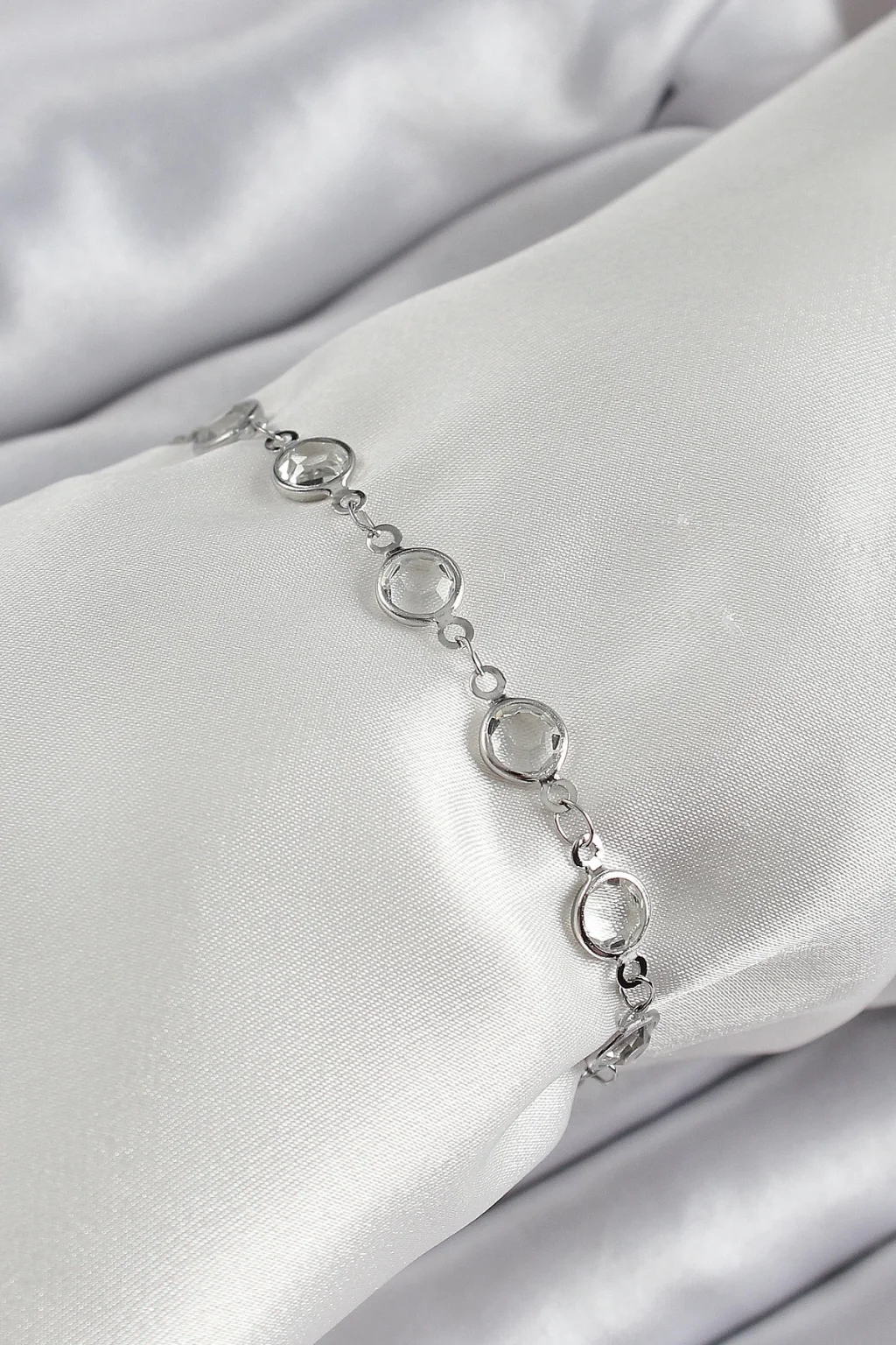 Pirinç Gümüş Renk Zirkon Taşlı Bileklik