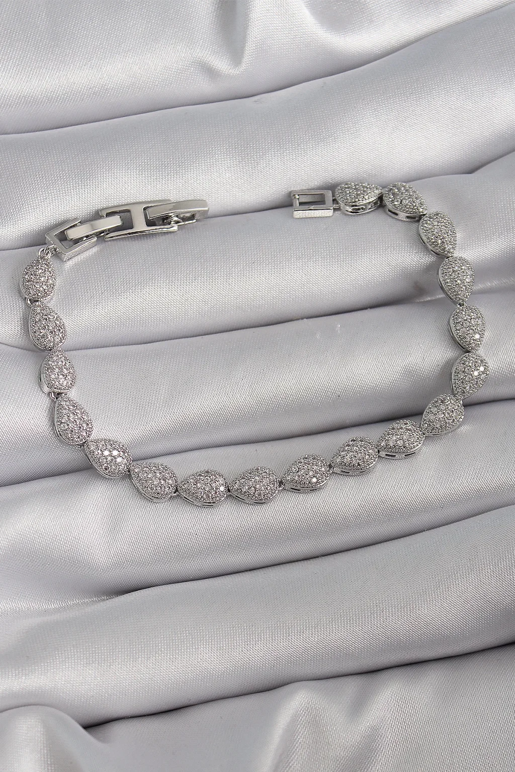 Pirinç Gümüş Renk Zirkon Taşlı Damla Model VIP Seri Kadın Bileklik