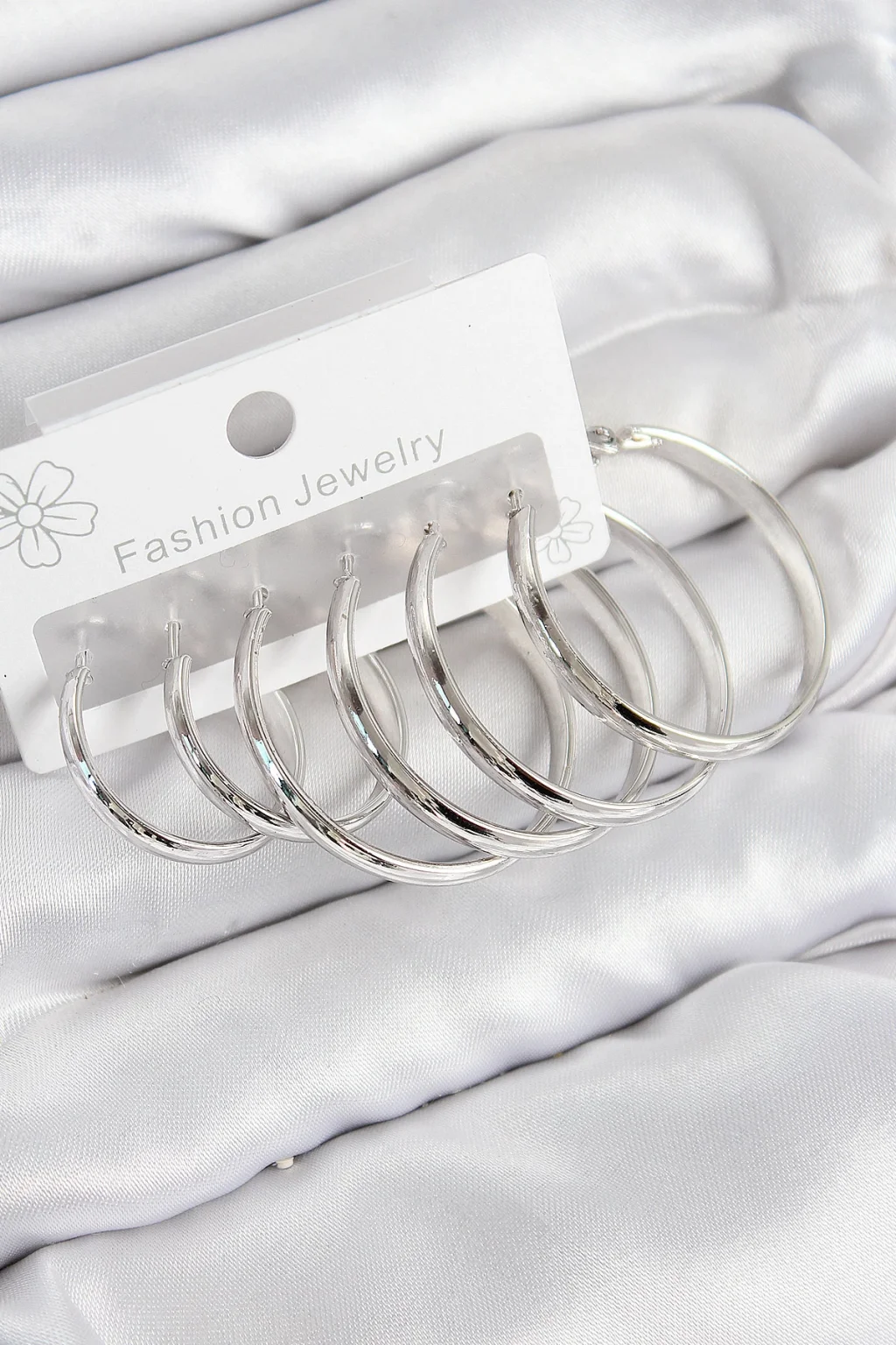 Pirinç Halka Model Gümüş Renk Kadın Set Küpe