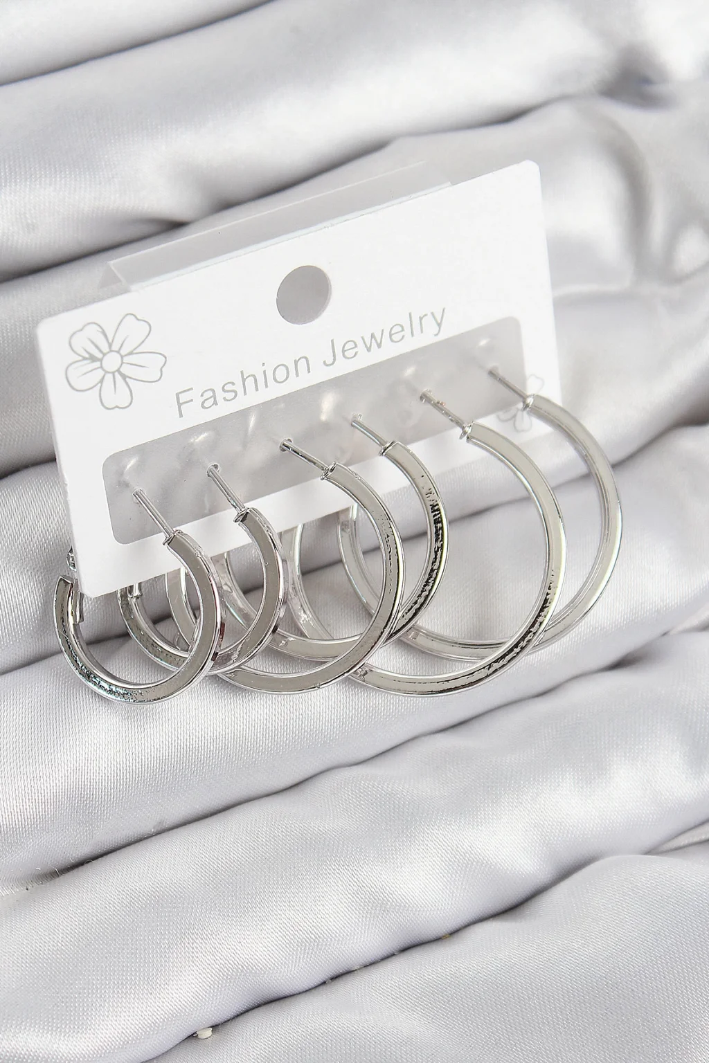 Pirinç Halka Model Gümüş Renk Kadın Set Küpe