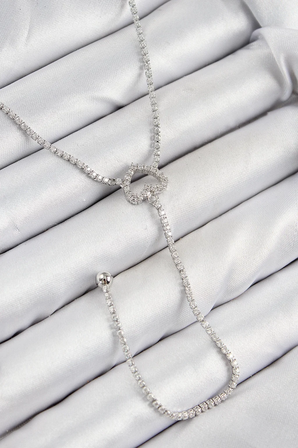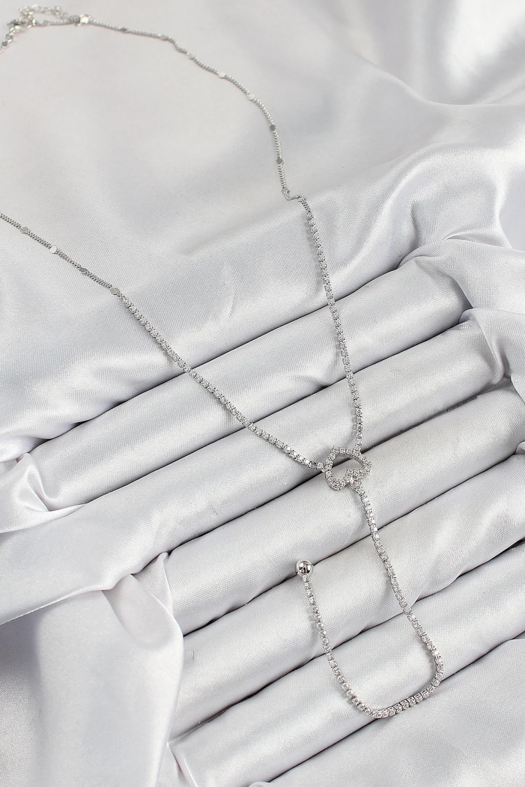 Pirinç Zirkon Taşlı Kalp Model Gümüş Renk Y Kolye