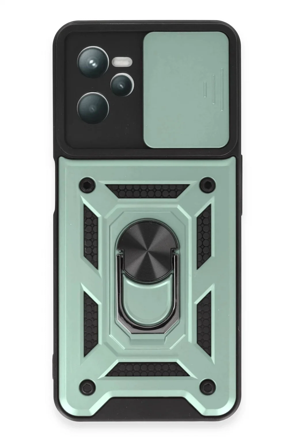 Realme C35 Kılıf Pars Lens Yüzüklü Silikon - Yeşil-(5796)