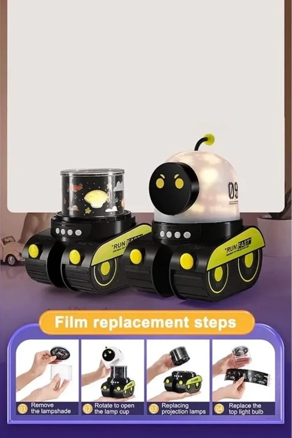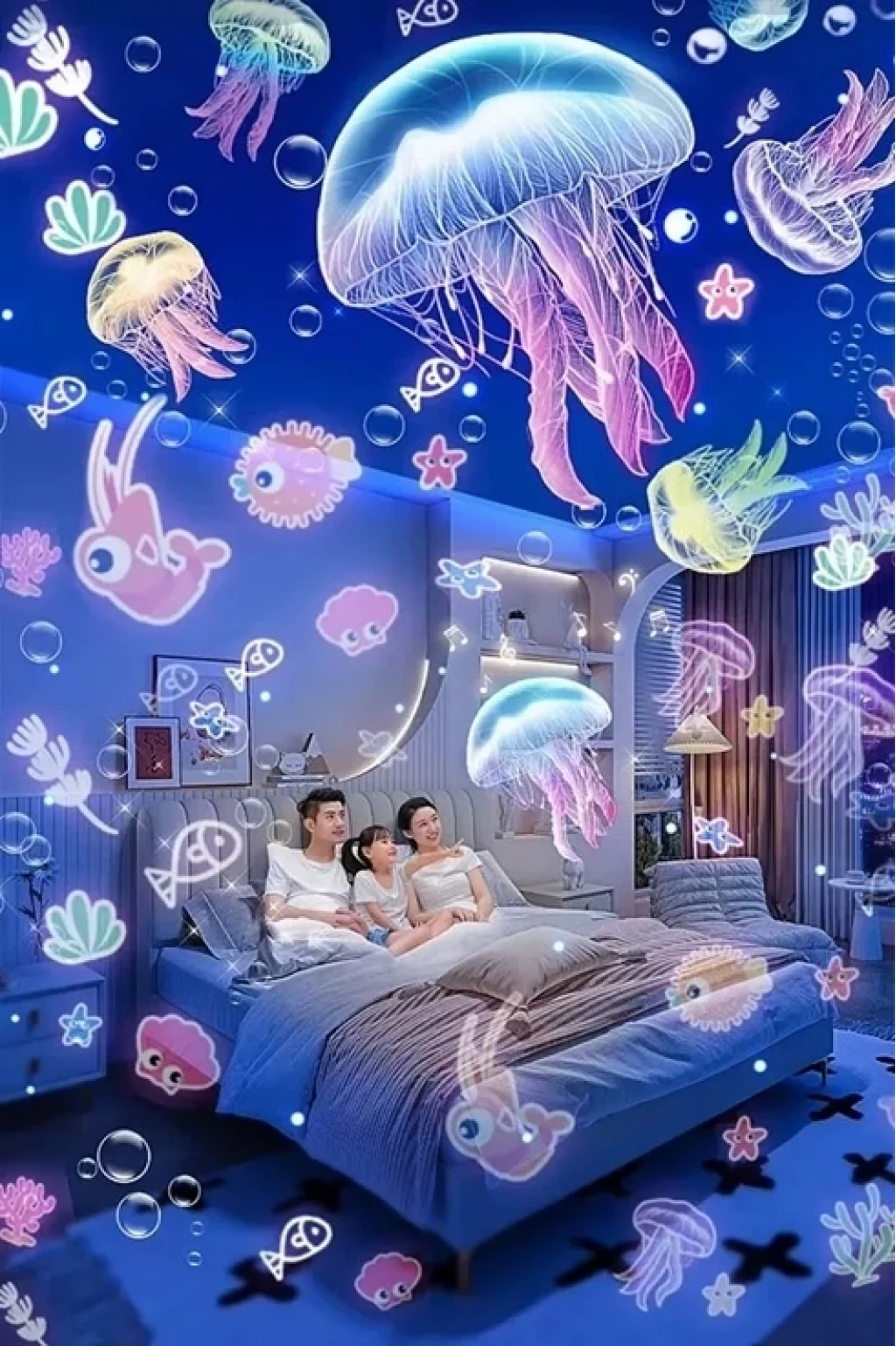 Desenler değiştirilebilir, tavan veya duvara yansıtılabilir.
