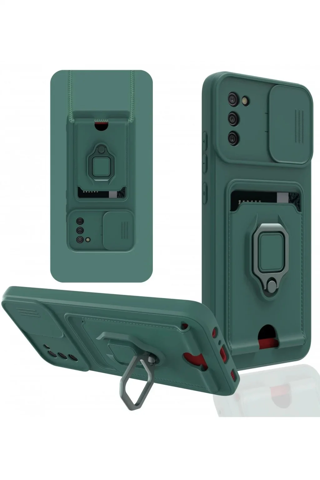Samsung Galaxy A02S Kılıf Zuma Kartvizitli Yüzüklü Silikon - Yeşil-(5796)