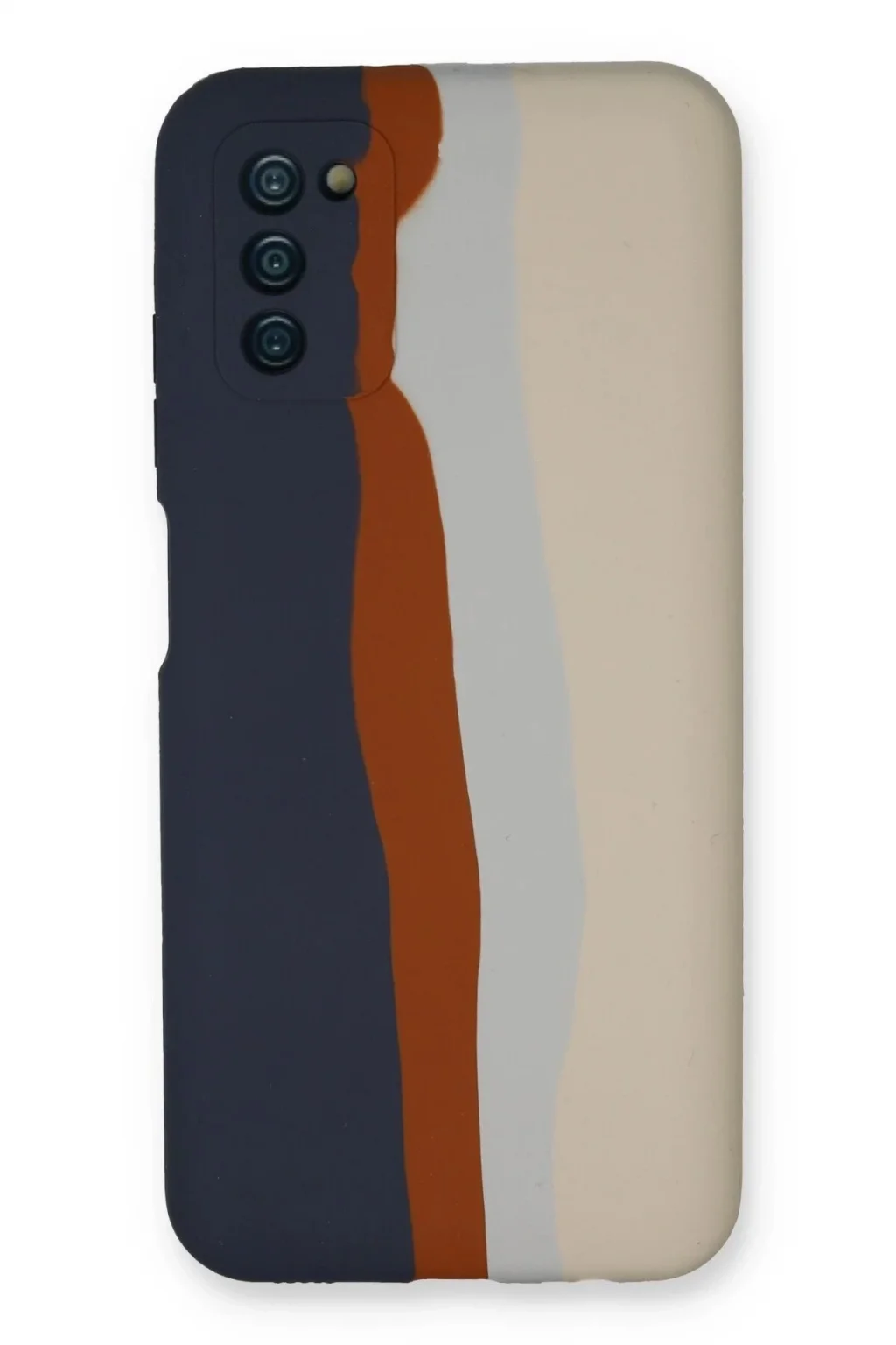 Samsung Galaxy A03S Kılıf Ebruli Lansman Silikon - Lacivert-Krem-(5796)