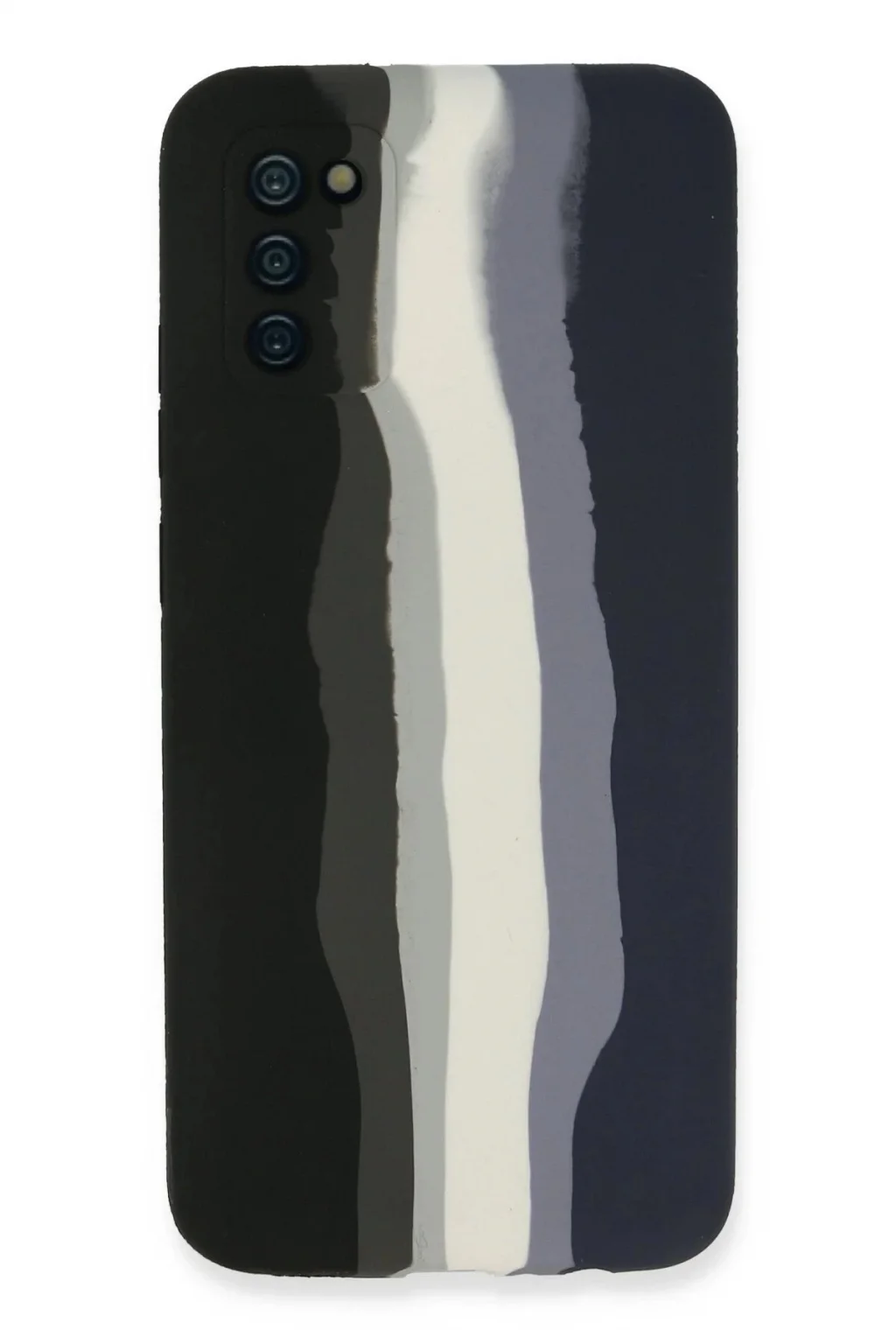 Samsung Galaxy A03S Kılıf Ebruli Lansman Silikon - Siyah-Lacivert-(5796)