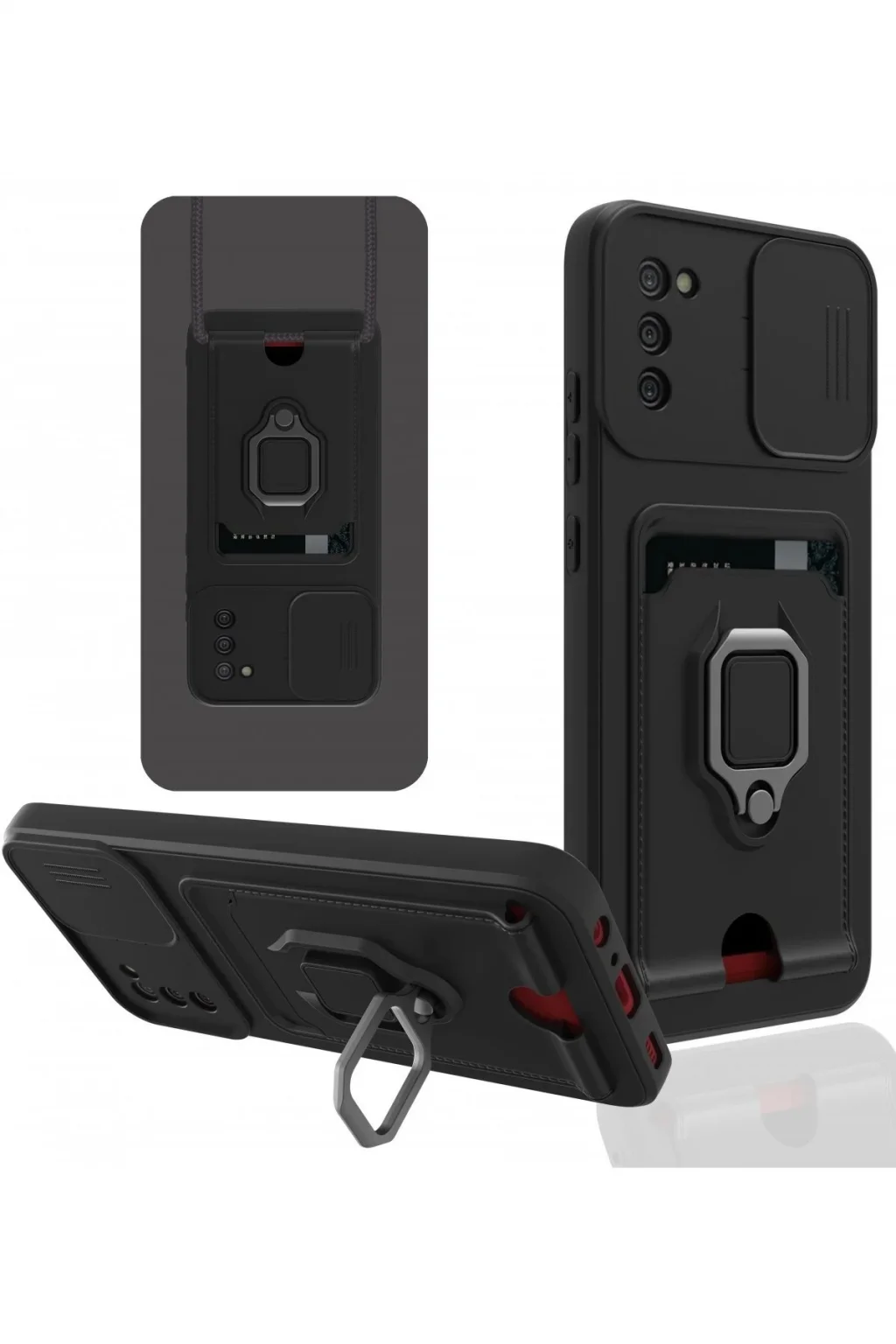 Samsung Galaxy A03S Kılıf Zuma Kartvizitli Yüzüklü Silikon - Siyah-(5796)