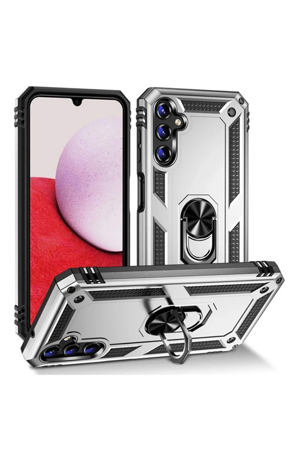 Samsung Galaxy A04S Kılıf Sofya Yüzüklü Silikon Kapak - Gümüş-(5796)