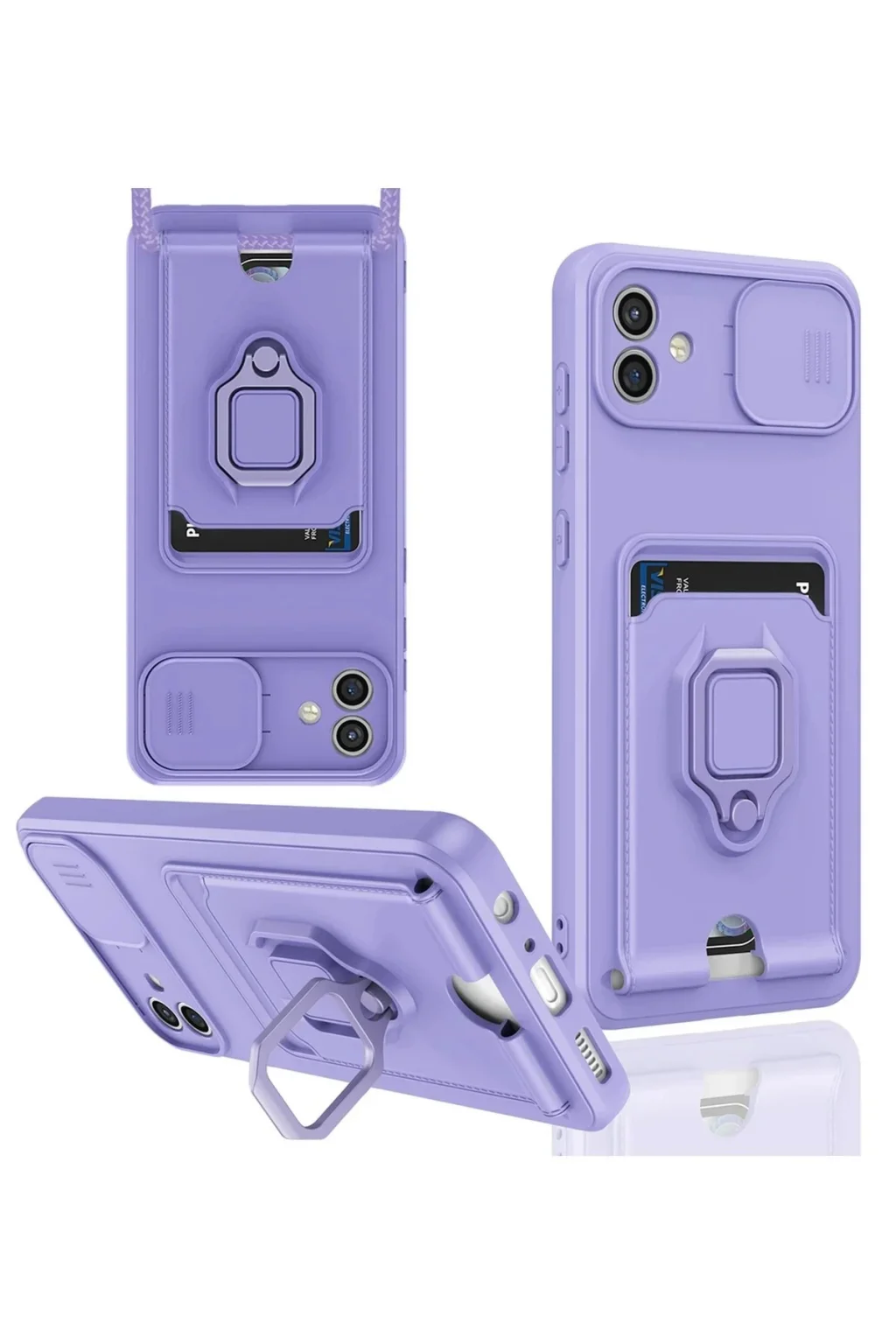Samsung Galaxy A05 Kılıf Zuma Kartvizitli Yüzüklü Silikon - Lila-(5796)