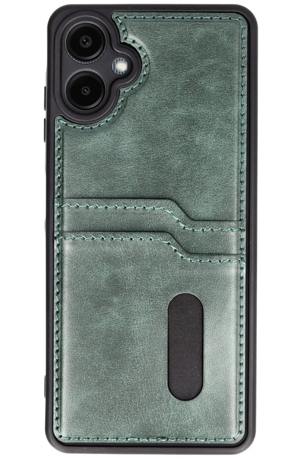 Samsung Galaxy A06 Kılıf Sara Kartvizitli Deri Kılıf - Koyu Yeşil-(5796)