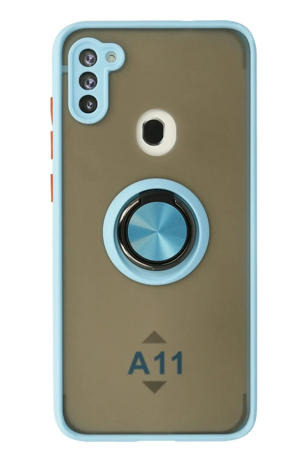 Samsung Galaxy A11 Kılıf Montreal Yüzüklü Silikon Kapak - Buz Mavi-(5796)