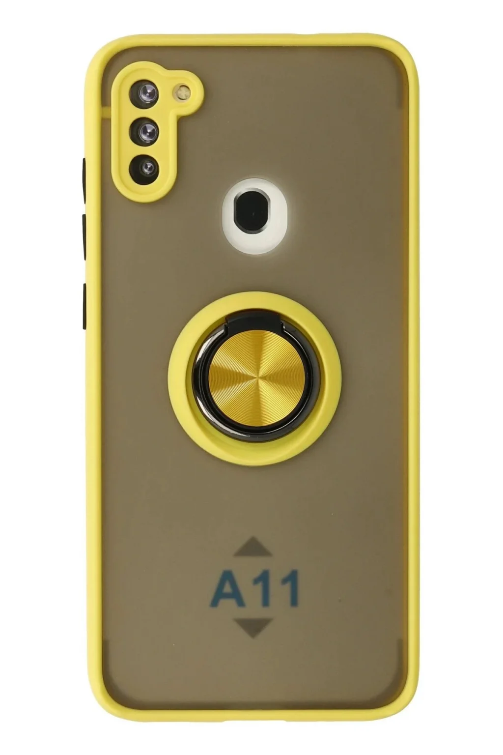 Samsung Galaxy A11 Kılıf Montreal Yüzüklü Silikon Kapak - Sarı-(5796)