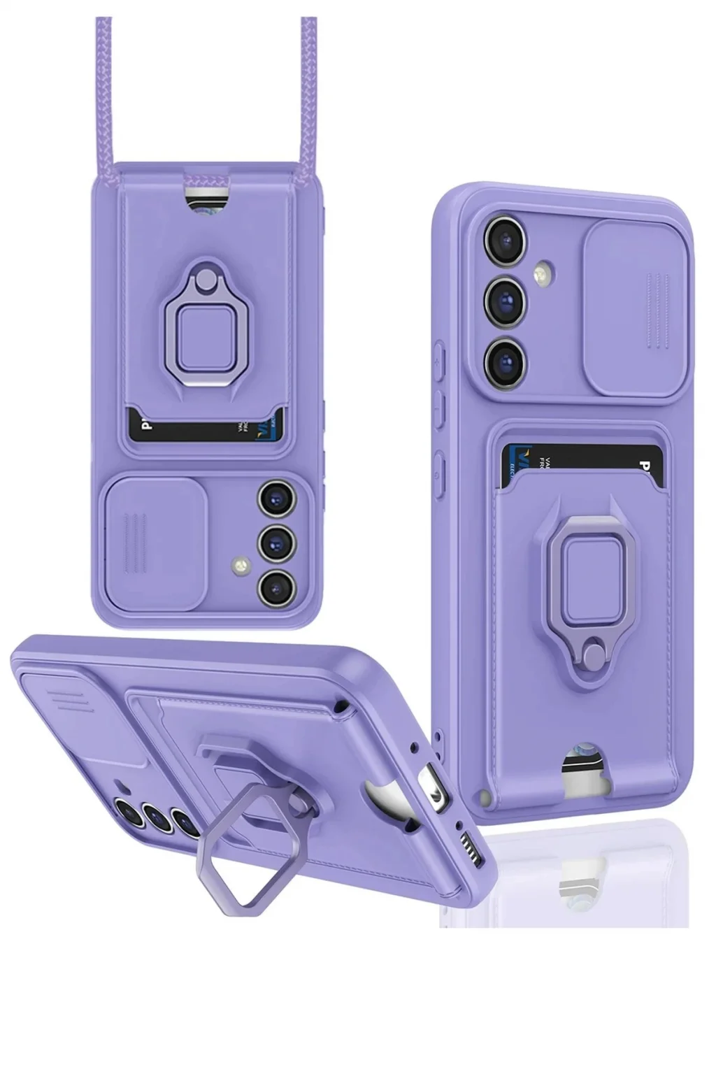 Samsung Galaxy A14 4G Kılıf Zuma Kartvizitli Yüzüklü Silikon - Lila-(5796)