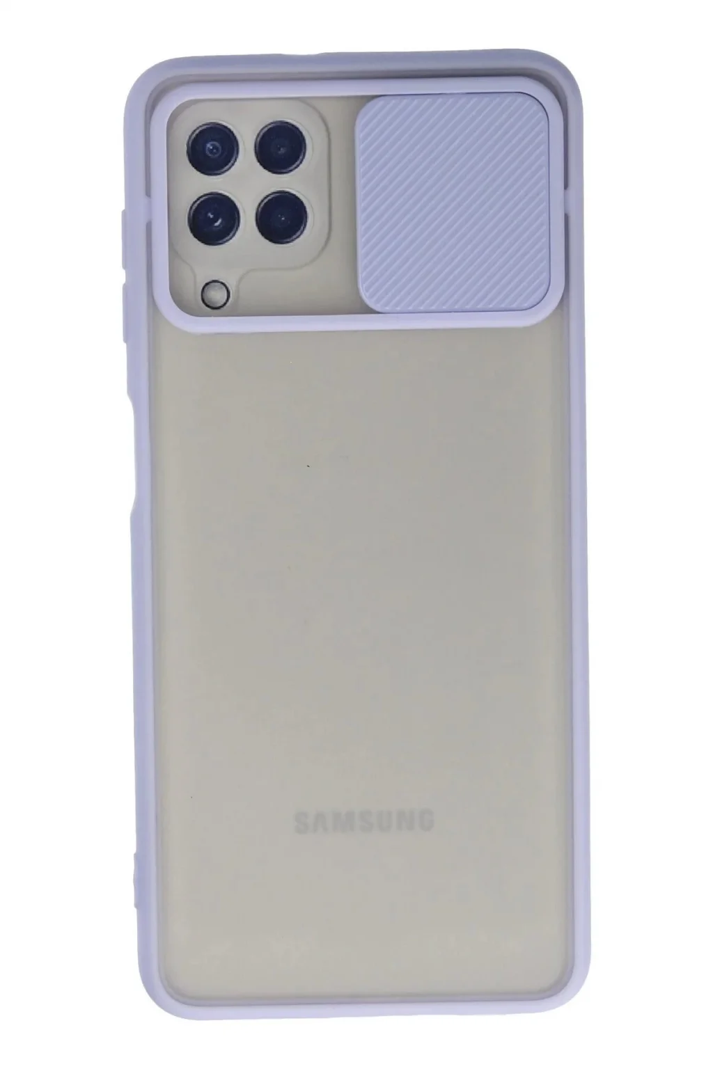 Samsung Galaxy A22 Kılıf Palm Buzlu Kamera Sürgülü Silikon - Lila-(5796)