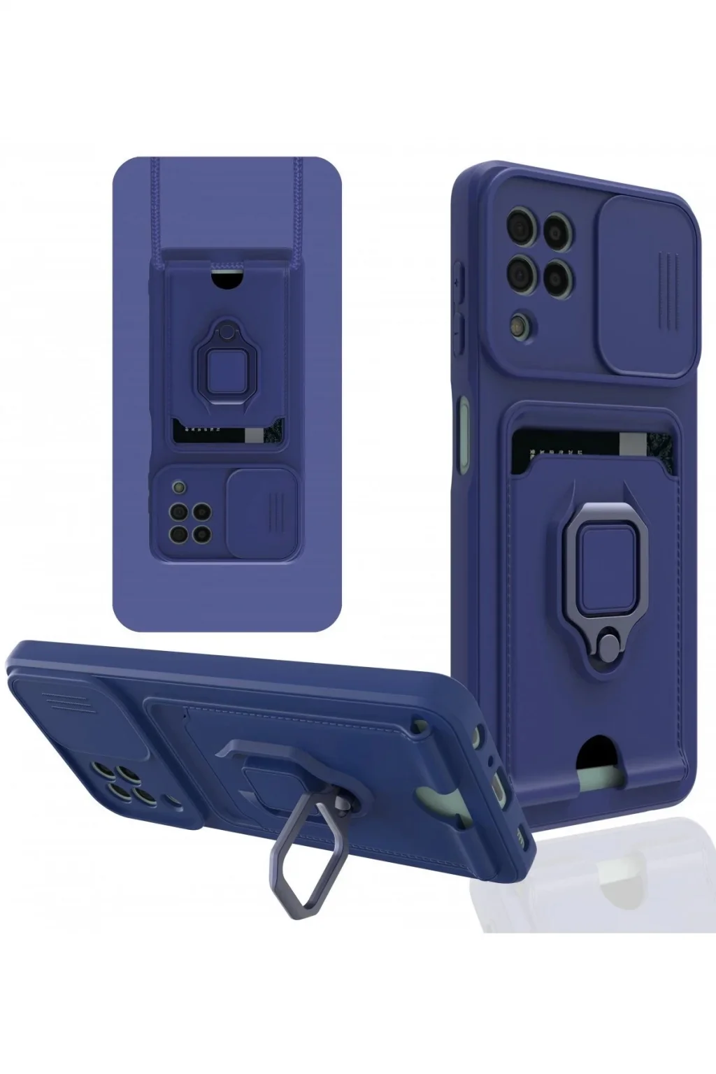Samsung Galaxy A22 Kılıf Zuma Kartvizitli Yüzüklü Silikon - Lacivert-(5796)