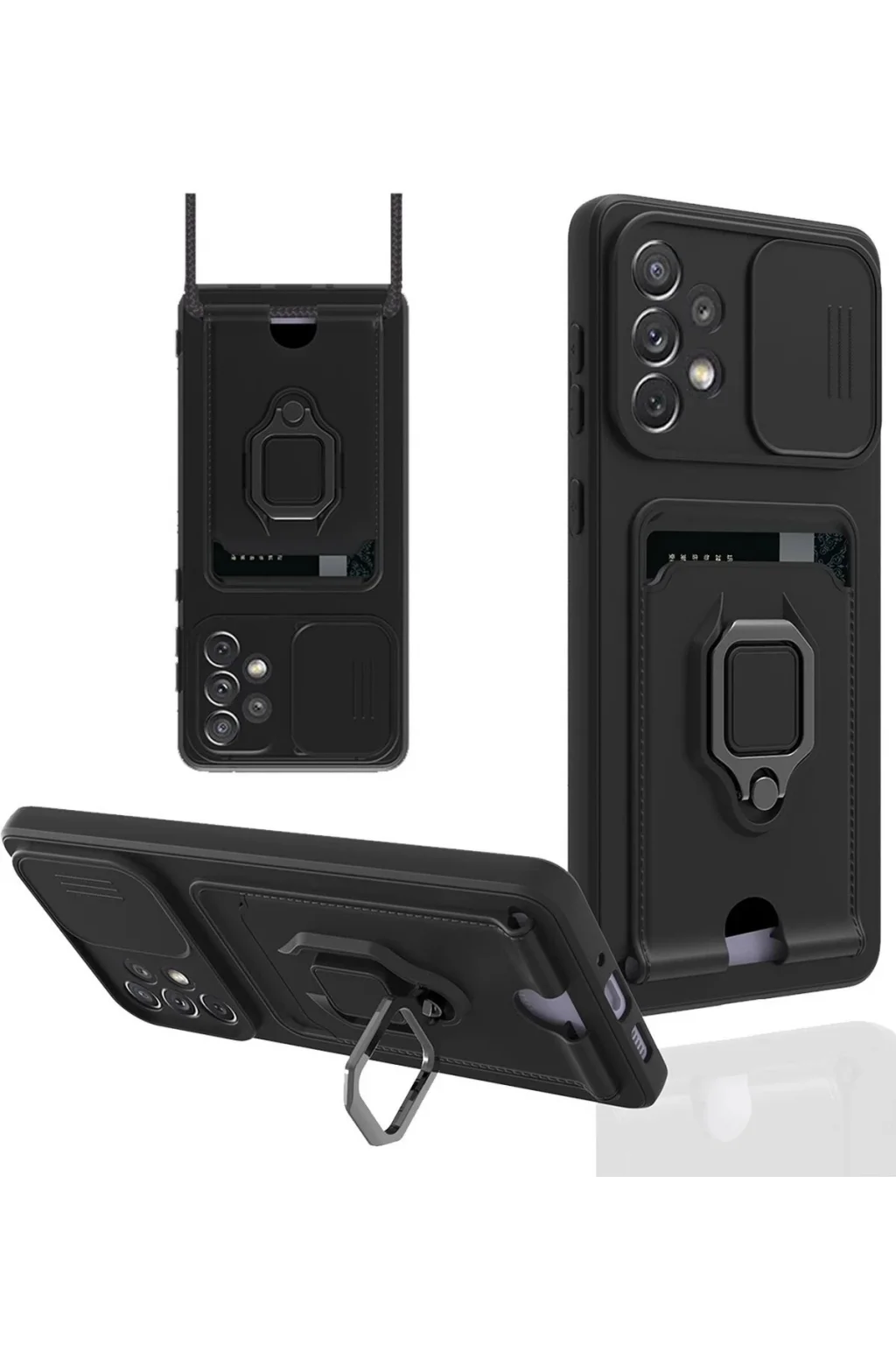 Samsung Galaxy A33 5G Kılıf Zuma Kartvizitli Yüzüklü Silikon - Siyah-(5796)
