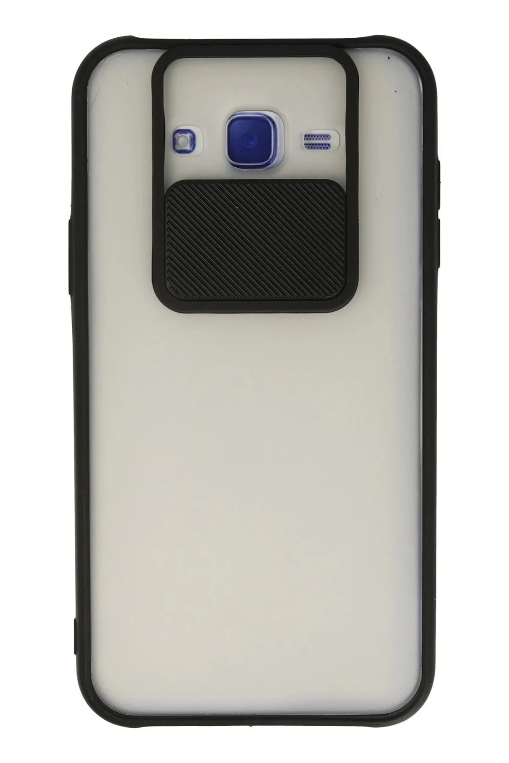 Samsung Galaxy J7 Kılıf Palm Buzlu Kamera Sürgülü Silikon - Siyah-(5796)