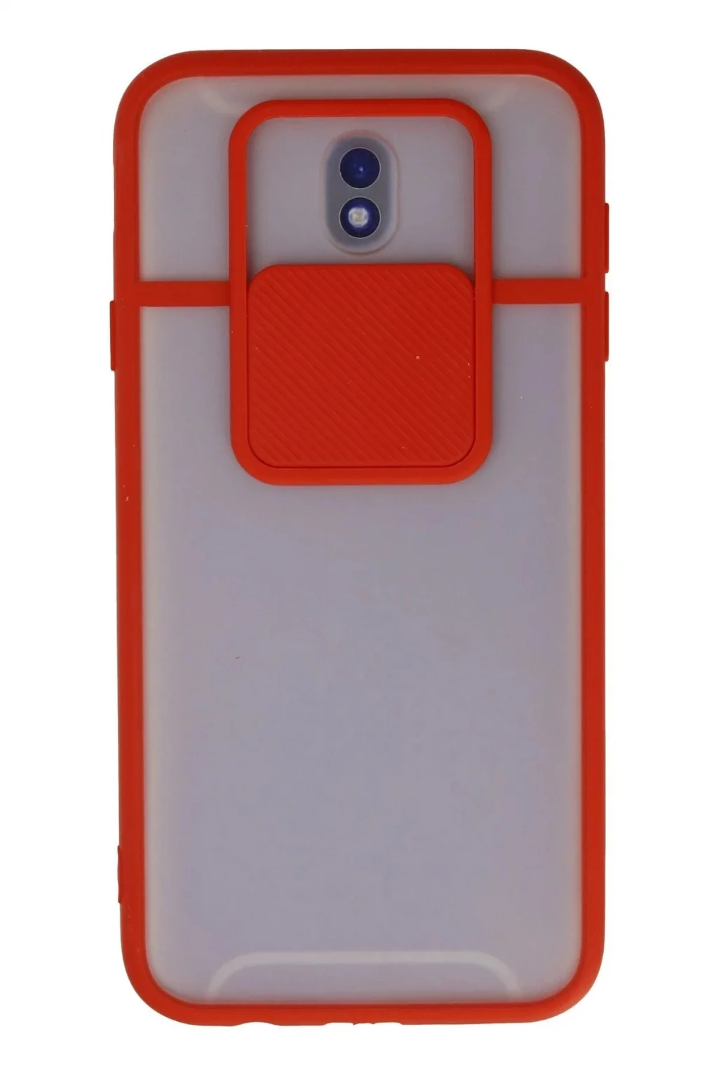 Samsung Galaxy J7 Pro / J730 Kılıf Palm Buzlu Kamera Sürgülü Silikon - Kırmızı-(5796)
