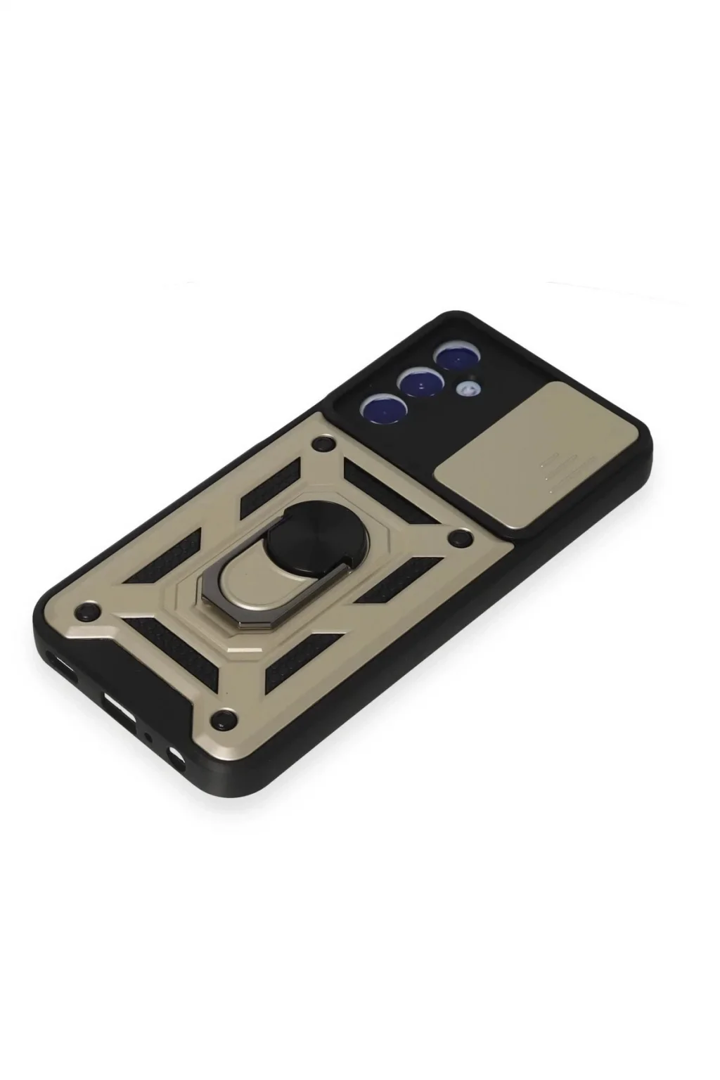 Samsung Galaxy M34 5G Kılıf Pars Lens Yüzüklü Silikon - Gold-(5796)
