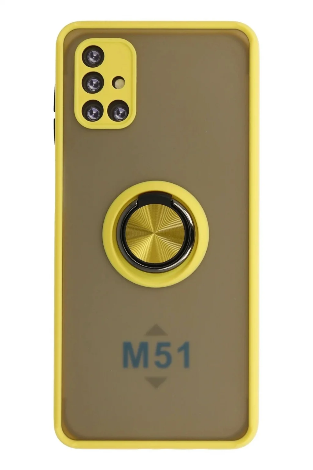 Samsung Galaxy M51 Kılıf Montreal Yüzüklü Silikon Kapak - Sarı-(5796)