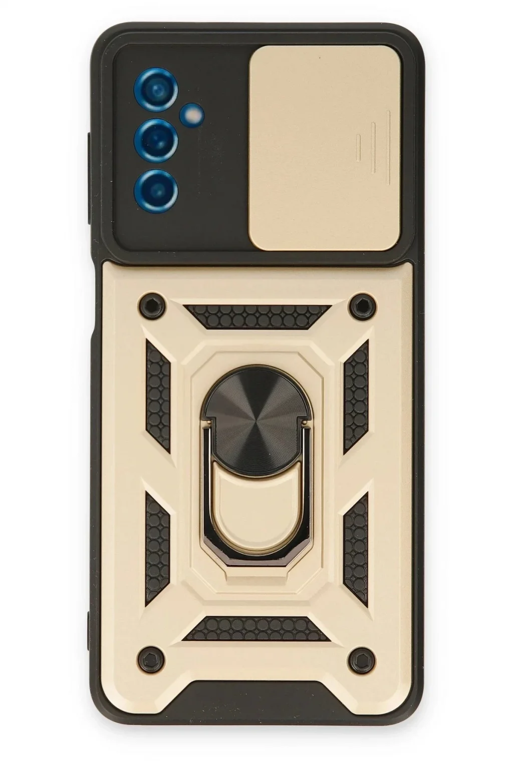 Samsung Galaxy M52 5G Kılıf Pars Lens Yüzüklü Silikon - Gold-(5796)