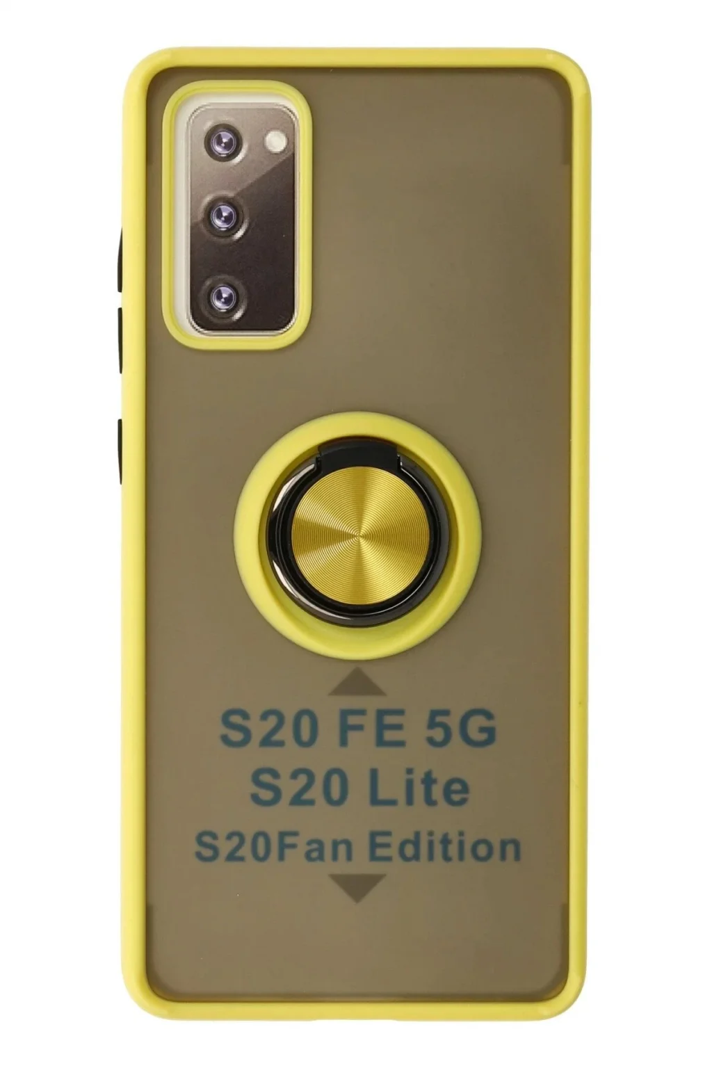 Samsung Galaxy S20 FE Kılıf Montreal Yüzüklü Silikon Kapak - Sarı-(5796)