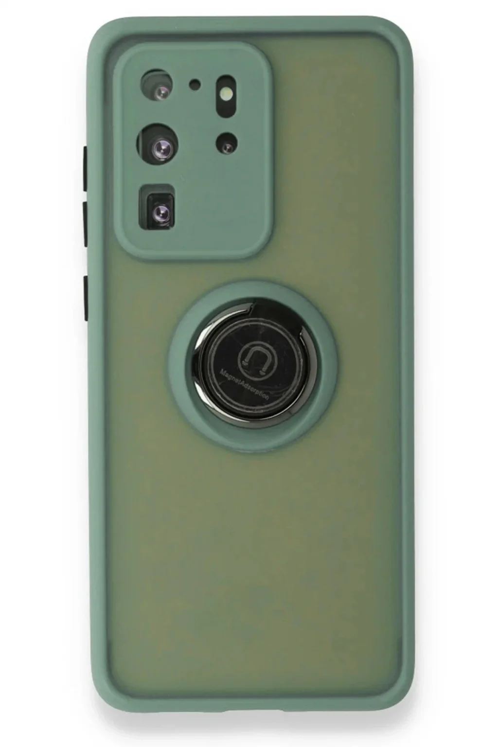 Samsung Galaxy S20 Ultra Kılıf Montreal Yüzüklü Silikon Kapak - Yeşil-(5796)