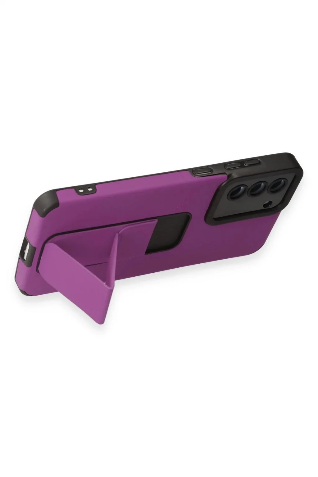 Samsung Galaxy S21 FE Kılıf Mega Standlı Silikon - Mor-(5796)