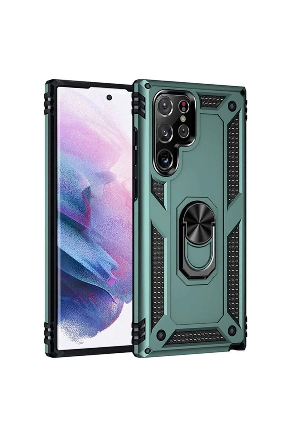 Samsung Galaxy S21 Ultra Kılıf Sofya Yüzüklü Silikon Kapak - Yeşil-(5796)