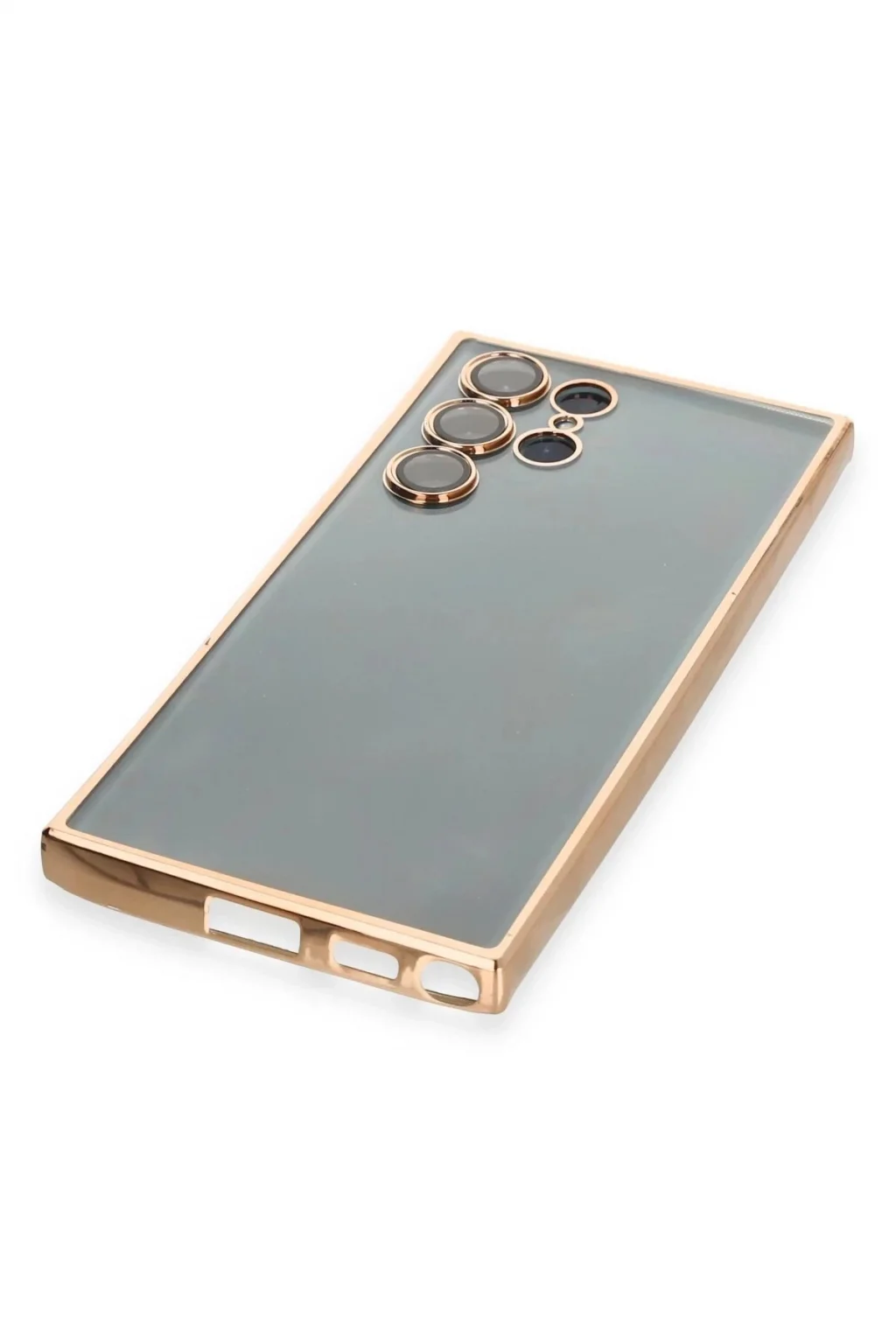 Samsung Galaxy S22 Ultra Kılıf Lensli Silikon - Gold-(5796)