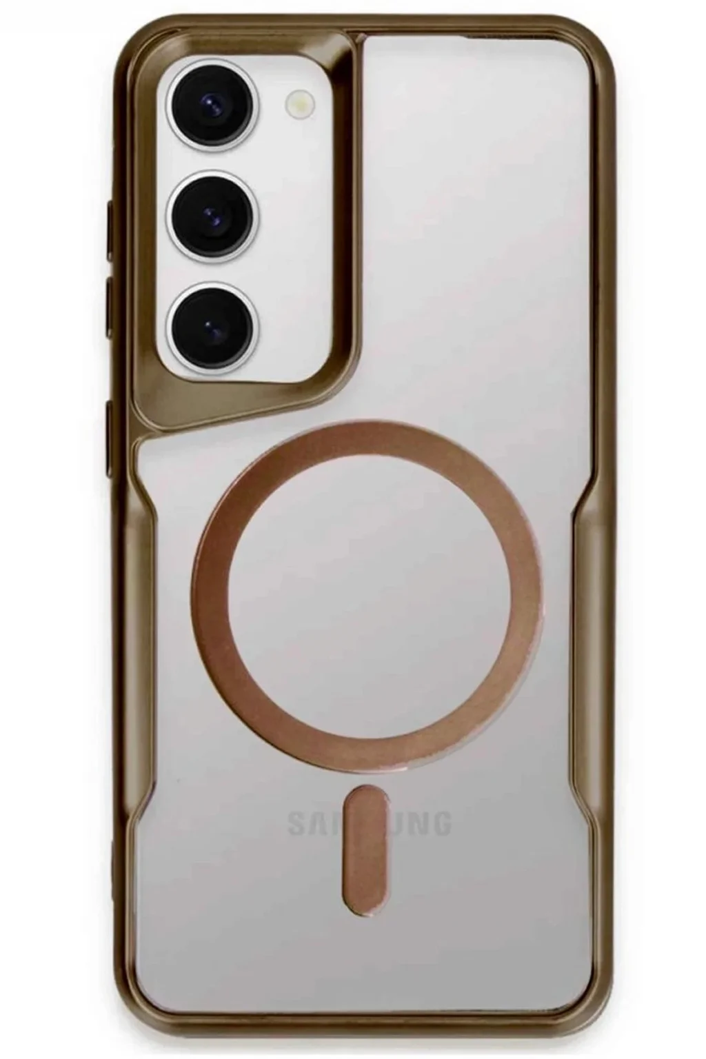 Samsung Galaxy S23 Kılıf Boyi Magsafe Silikon Kapak - Kahverengi-(5796)