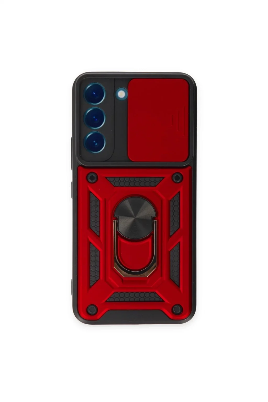 Samsung Galaxy S23 Kılıf Pars Lens Yüzüklü Silikon - Kırmızı-(5796)