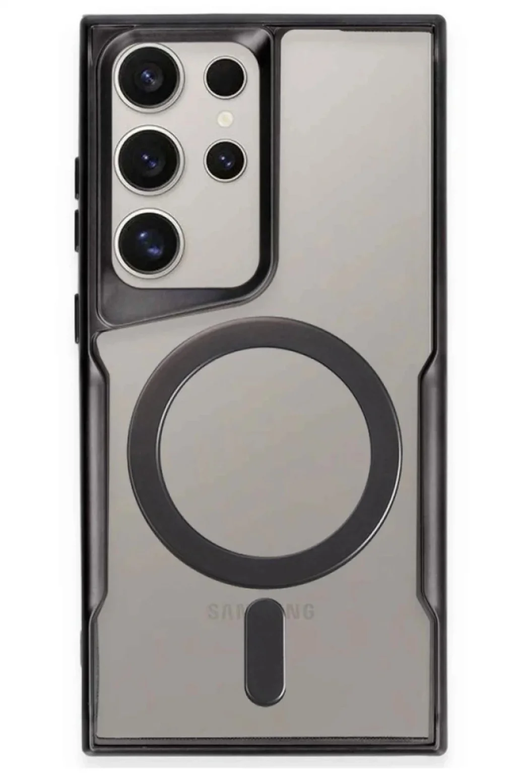 Samsung Galaxy S23 Ultra Kılıf Boyi Magsafe Silikon Kapak - Siyah-(5796)