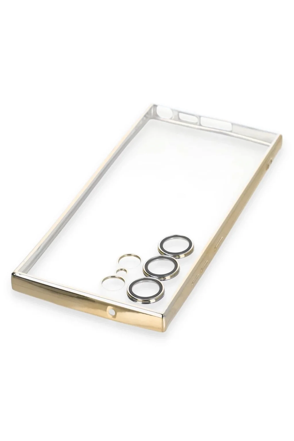 Samsung Galaxy S23 Ultra Kılıf Lensli Silikon - Gold-(5796)
