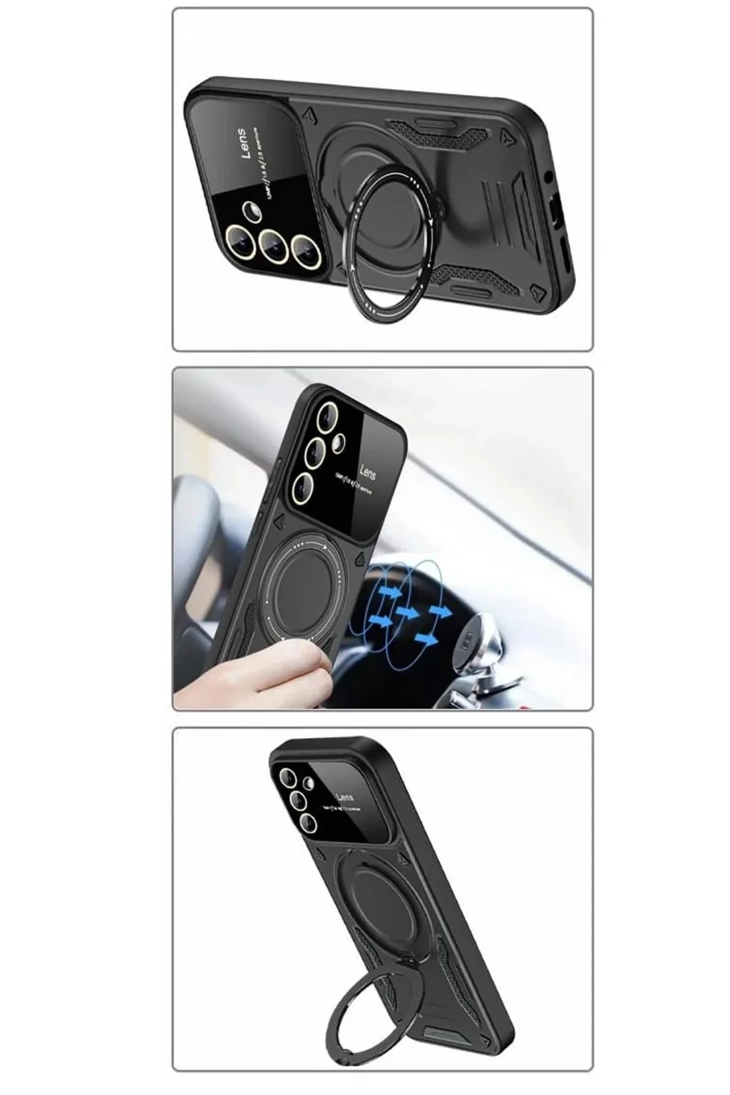 Samsung Galaxy S24 FE Kılıf Joy Lens Standlı Kapak - Koyu Yeşil-(5796)