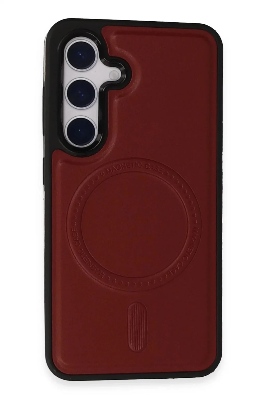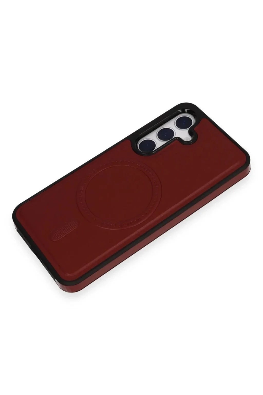 Samsung Galaxy S24 Kılıf Ozzi Magsafe Deri Kapak - Kırmızı-(5796)