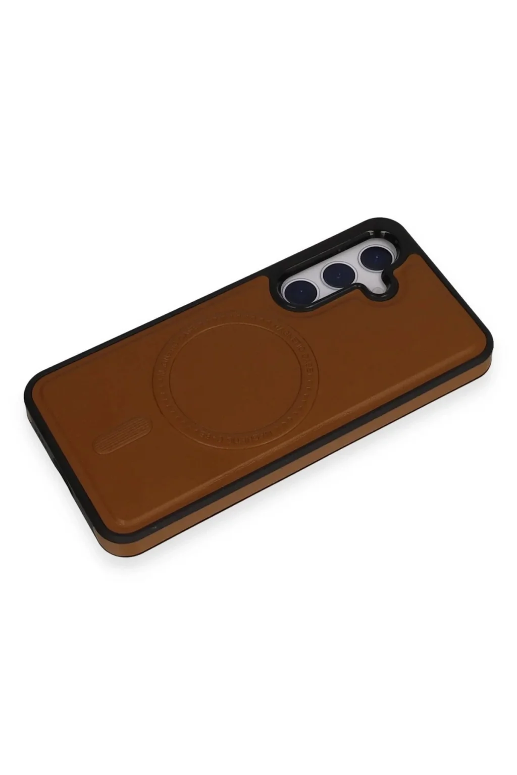 Samsung Galaxy S24 Kılıf Ozzi Magsafe Deri Kapak - Taba-(5796)