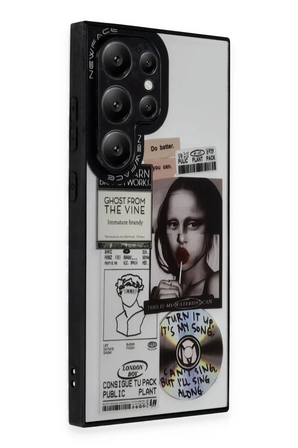 Yüzeydeki dijital kolaj temalı desenler; retro yazılar, ikonlar ve mesaj kutularıyla birleşerek tasarıma özgünlük ve derinlik katar